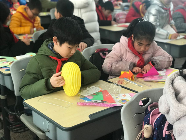 五年级教室可谓琳琅满目,孩子们正用彩笔、剪刀、刻刀、卡纸、挂历、饮料瓶、一次性纸杯等精心制作花灯,脸上幸福满满。随着美灯奖、创意奖、巧手奖、造型奖的揭晓,孩子的创意得到了最大程度的发挥!