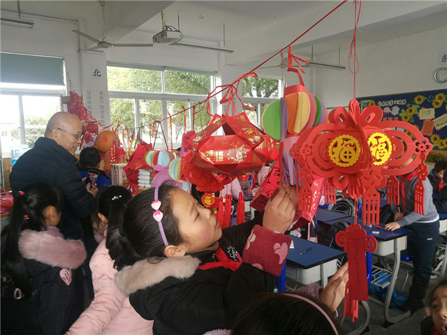 一二年级的学生带来了精心准备的灯笼,个个脸上洋溢着兴奋的笑容,老师们将灯谜和灯笼放在一起,带领学生体会着节日的欢乐!