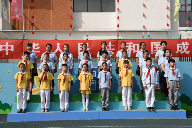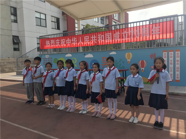 其次,各班的优秀学生代表上台,送上对祖国的真挚祝福。同学们的千言万语,包含着对祖国深深的爱,作为新时代的儿童,都应有一番伟大的志向。全体学生还一起宣誓:今天做祖国的好儿童,明天做祖国的建设者!