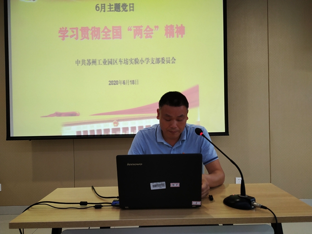 为学习好宣传好贯彻好今年全国两会精神,根据上级指示,结合当前工作实际,6月18日下午,车坊实验小学党支部组织开展了“学习贯彻全国‘两会’精神”主题党日活动。活动由组织委员陈斌主持。