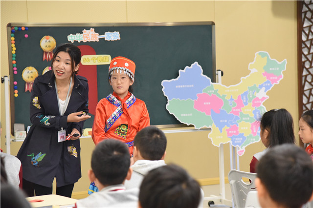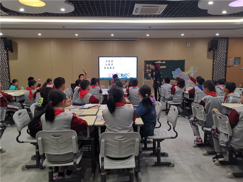 本次教研活动,由杜金婷老师执教五年级上册民族一家亲.,杜老师先由一首轻快的歌曲开场,从少数民族名称入手,引导小组讨论,激发学生了解和研究少数民族的风俗民情,由浅入深,层层推进。接着,杜老师还利用视频图表和展板等多种方式让学生进一步了解国家的五个自治区的地理位置和现状。最后,学生在习近平爷爷语录中感受到中华民族“你中有我,我中有你”的氛围。