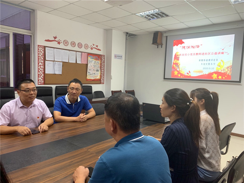 为普及先进的家庭教育理念,做实、做好党员参与社区共驻共建活动,提高家长育儿水平,构建学校、家庭、社区三位一体的家庭教育网络,2020年9月10日晚,车坊实验小学组织党员教师在校长室、德育处的带领下,前往淞泽家园三区开展党建暨公益讲座活动。