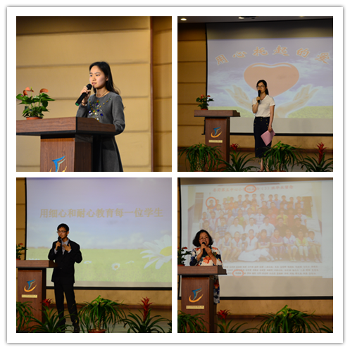 活动现场打分,评委们从演讲内容、语言表达、演讲效果、仪态仪表等方面进行打分。经过一个半小时的激烈角逐,陶洪、何苗、朱英三位老师获一等奖,罗静、陈莹等六位老师获得二等奖。