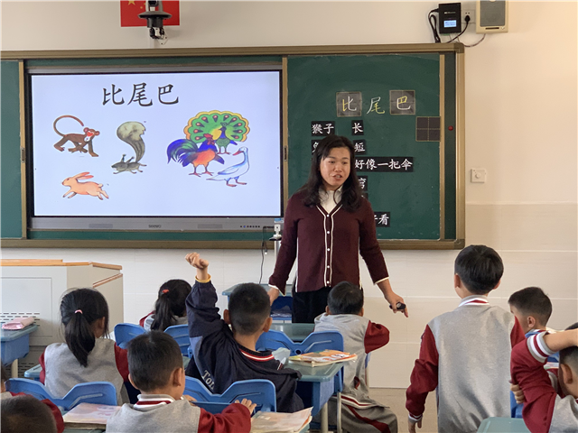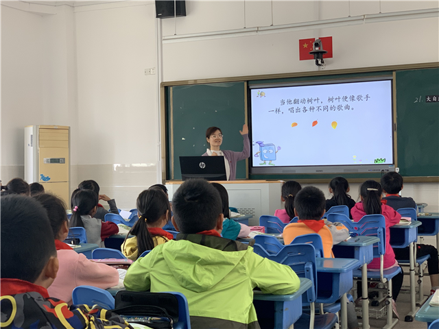 沈月兰老师执教一年级《比尾巴》。沈老师创设故事情境,将小朋友们带入动物王国中,紧扣一年级朗读和识字的目标,指导学生读好轻声、读好问号、读好文本,在生动有趣的课堂中带领孩子们了解不同动物尾巴的特征。罗静老师执教三年级《大自然的声音》,她利用思维导图的方式让学生了解课文结构,并借助大自然中不同的声音呈现,让孩子们身临其境地感受自然之神奇。
