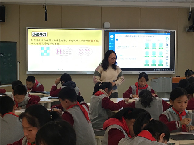 高组吉芸老师执教《分数的意义》,吉老师从帮助学生理解单位“1”,再到揭示分数的意义,引出分数单位,最后通过练习巩固,拓展提升,培养学生的思维品质。高组徐兰老师执教《平均数》,徐老师通过套圈游戏引入新课的学习,在学生的交流讨论中总结出求平均数的两种方法,教学中具有指向性的提问让学生有方向的去学习,精心设计的练习题也让学生更好地掌握所学知识。