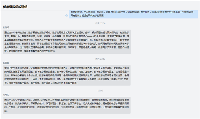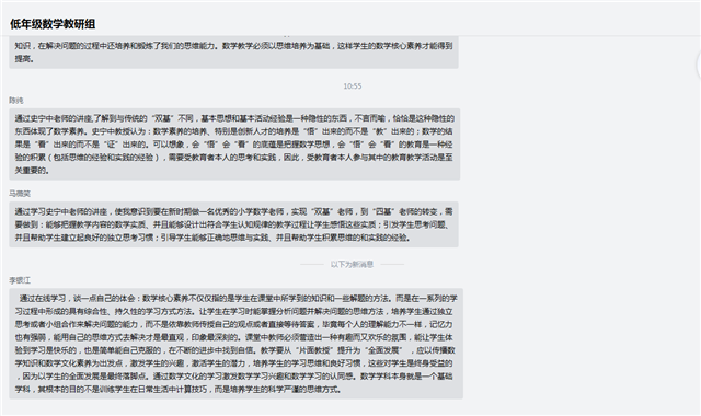 数学组老师在线观看视频讲座《义务教育数学课标中的数学核心素养》,老师结合自己的理解交流学习心得。