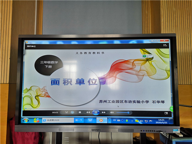 区学科带头人石华琴老师执教线上课《面积单位》。石老师以1平方厘米为例,先引导学生通过不同方式去感受1平方厘米。让学生分别说、画、想、联系生活等环节,感受面积单位的意义。再通过让学生找出生活中的实物和估算一平方米里可以站多少同学,加深学生对1平方分米和1平方米的大小的认识。区教学能手李银江老师进行了点评,他指出石老师从学生已有经验出发,层层深入,指导学生感悟并理解面积单位,是一节适合学生学习的线上优课。