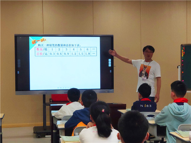 区教学能手陈明华老师执教六下数学《正比例的意义》。陈老师从生活化的情境引入,激发学生学习兴趣,接着通过观察、比较、讨论、分析等一系列学习过程,将抽象的概念化为具体,带领学生初步建立了数学模型。区教学能手吉芸老师进行点评,她充分肯定了陈老师轻松幽默的课堂,通过表格让学生去比较、去发现,从而寻求规律。整堂课突出学生的主体地位,提高学生主动探究的能力。