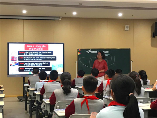 区教学能手叶敏芳老师执教六下英语《Summer holiday plans》。她在谈话过程中时刻紧扣本单元的重点句型,学生口头操练到位,很好地解决了听说读写技能中的听、说两个技能。同时为了让学生合理利用所教授的各个tips,叶老师都进行范文的对比写作,遵循了学生的认知规律。区科研能手朱英老师进行点评,她表扬了叶老师的内容整合、语境带动和语用体验能力。叶老师的课堂环节设计极具科学性,学生的听、说、读、写在各个环节的侧重点的设计遵循了学生的认知规律和语言习得规律。她勉励在座的青年教师学习叶老师的这种专研精神。
