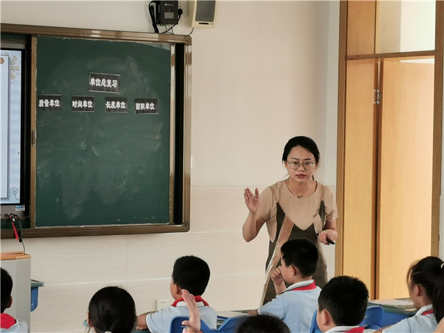 陈纯老师执教的三年级数学课《单位复习》。陈老师首先对质量单位、时间单位、长度单位、面积单位进行系统的复习,强调各单位之间的关系,并设计了填一填、想一想、连一连、改一改等环节,学生积极性高,课堂效率较好。