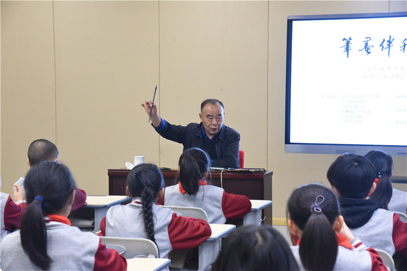本次活动特别邀请南京师范大学美术学院书法系系主任、教授,中国书法家协会会员、教育委员会委员王继安教授走进校园,通过公益讲座形式面对面为孩子们讲述书法知识与传统文化。王继安教授的讲座从书法起源讲起,详细地向同学们介绍练习书法的基本要求,并亲自向同学们示范练习书法时的坐姿以及“五指执笔法”的执笔姿势。台下的同学们全神贯注地听着王继安教授的讲解,并且认真地执笔跟随王继安教授进行练习。