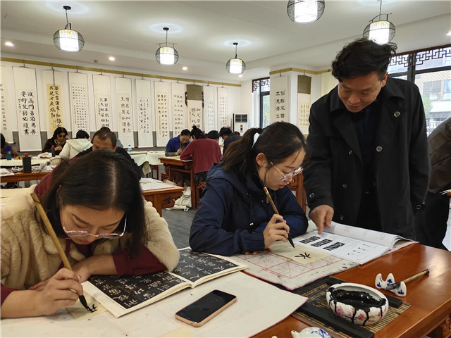 最后,学员们回到教室进行临摹学习,专家们为各位学员进行个别指导。