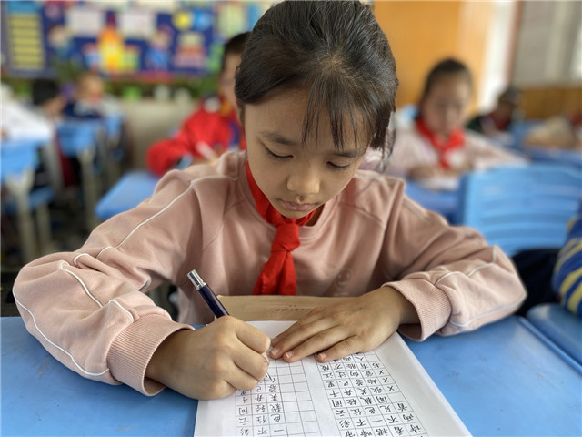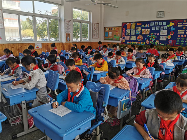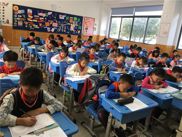 在比赛过程中,各班语文老师有序组织学生用钢笔字正确、规范、端正地书写。你瞧,他们挺直身子,个个精神饱满,神气十足。在书写姿势上,学生们也毫不含糊,胸口距离桌子一拳,双眼距离桌子一臂,双臂张开,双足落地,阳光洒落在小小的脸庞,勾勒出认真的样貌,展现了车小学子的阳光、努力。