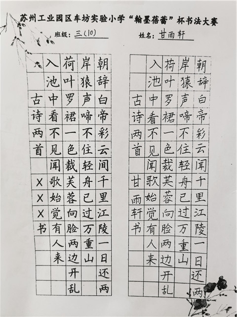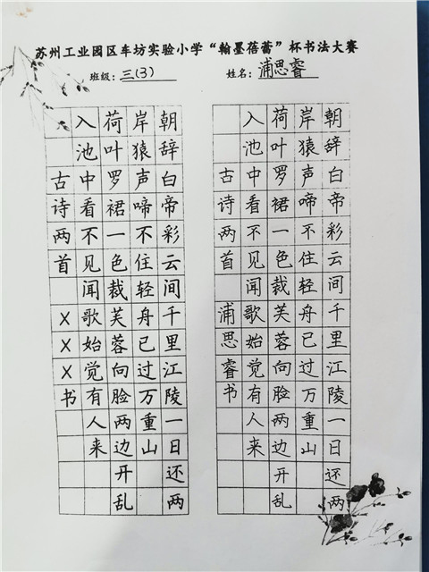 本次比赛中,同学们书写内容为《采莲曲》《早发白帝城》《鹿柴》等经典古诗词,极具美感的文字让学生在比赛中能感受到语文的美,书法的美,中国传统文化的美。动人的文字在孩子们稚嫩的笔尖流淌,一句句柔情的诗句,怀揣着心间美好的希冀。