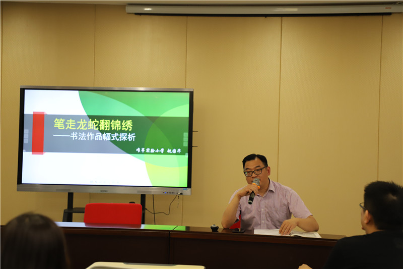 9月7日下午,车坊实验小学邀请中国教育学会书法教育专业委员会会员、江苏省书法家协会会员、江苏教育学会“赵国华书法教育工作室”创始人赵国华老师,为全校语文老师做《笔走龙蛇翻锦绣,乘风破浪翰墨香》书法幅式专题讲座。