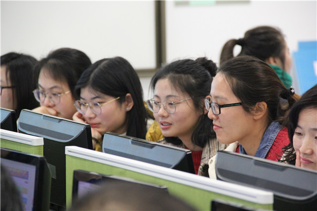 最后,李银江老师和俞爱玲老师对新出台的信息化考核办法进行了解读,并对课程建设、作业布置等重点内容进行了操作演示。之后,老师们也进行了实践操作。
