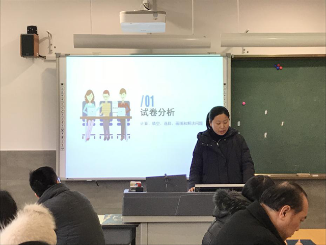数学备课组长们用实际数据说话,对上学期组内各班数学期末考试情况分别作质量调研分析。李银江老师作为青年教师代表,从教学目标设置、学习情境创设、教师课堂语言这三方面出发,分享了自己对课堂教学有效性的几点思考。