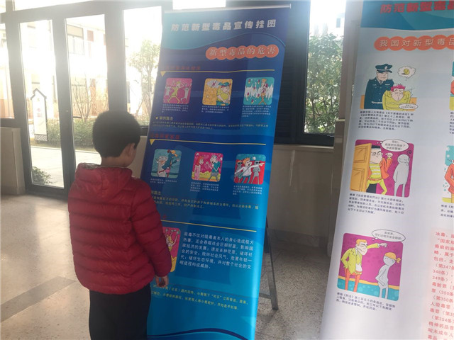 中午,来自淞泽派出所的计警官向学生展示了多种毒品仿真样本,并通过禁毒宣传展览以及发放宣传册等方式,为学生们构筑了一条预防毒品的宣传教育长廊。