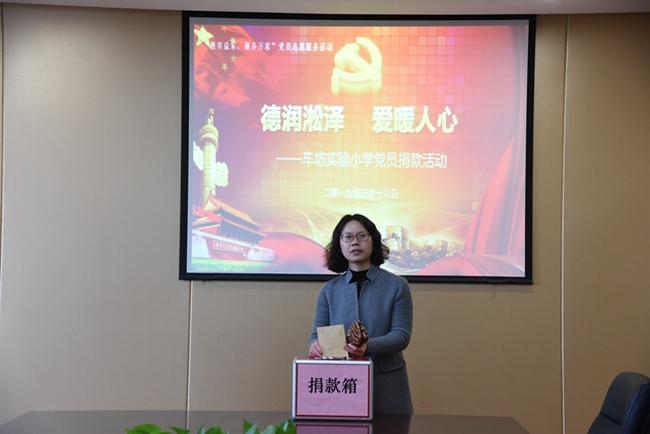 自发募捐,爱心涌动:3月18日中午,车坊实小全体党员齐聚一堂,开展了主题为“德润淞泽”的党建创新项目,自发为翁欣怡同学开展募捐活动,彰显了党员干部讲党性、重品行、作表率的优良品质。