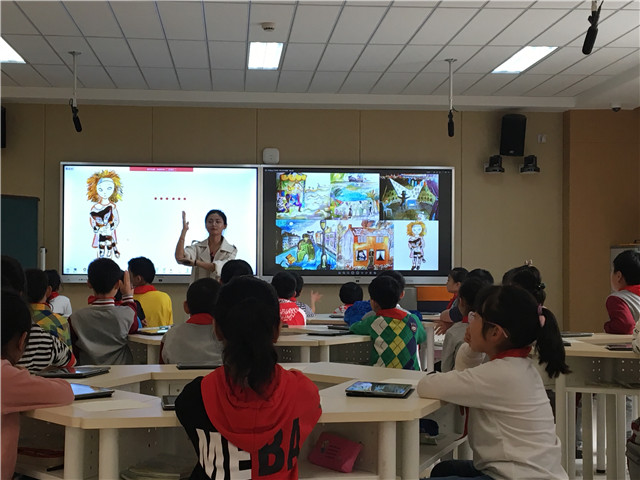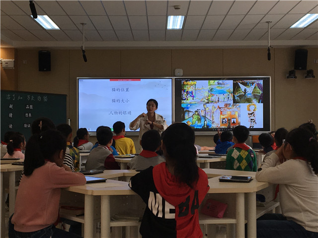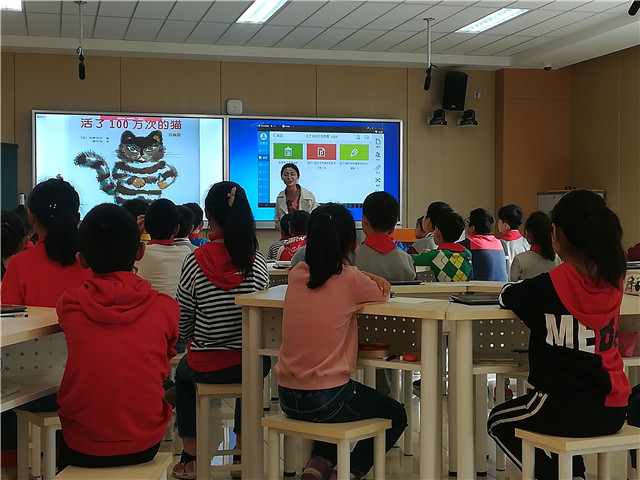 绘本因其情节的曲折性以及语言的生动性深受儿童的喜爱,其中蕴藏的丰富的想象力和极大的张力也契合了小学中低段学生爱追问、爱探索的年龄特征,故而绘本阅读越来越多地进入了语文教学中。为了更加有效地进行绘本教学,4月9日上午,苏州工业园区车坊实验小学开展了“语文绘本阅读教学”专题研讨活动,整个活动紧扣束会琴主任主持的市十三五课题“依托绘本指导中低年级学生课外阅读策略的实践研究”展开,全体中高年级语文教师聚集在未来教室参加了此次活动。