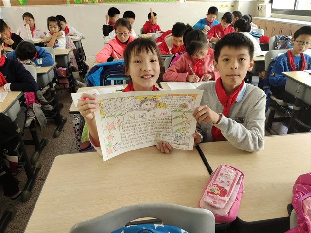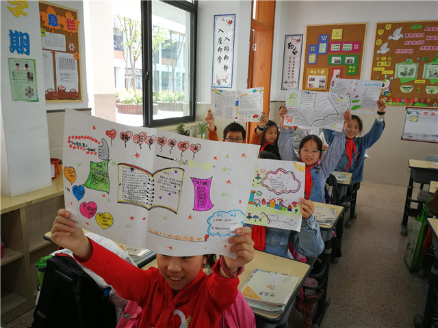以班级为单位,利用班会课,发动每位学生开展“好书齐分享”活动,并借此指导孩子根据自己的阅读制作读书小报。四年级的孩子们都很兴奋,他们选择自己最欣赏、最喜爱的好书,在认真阅读的基础上,把好书中的主要内容、值得阅读的原因,以及部分精彩语句,摘录、编写,制作出一张张精美的读书小报,让老师们都叹为观止,学生们一个个郑重地在自己的读书小报上写下自己的姓名,将优秀读书小报作品进行校内展示,共同感受着书香带来的熏陶。