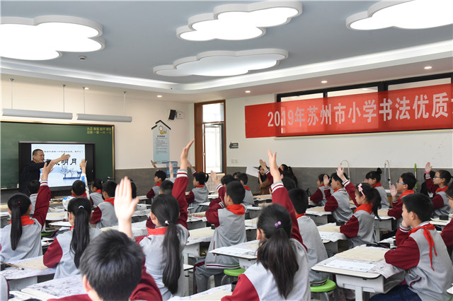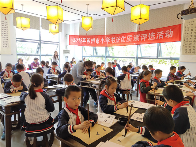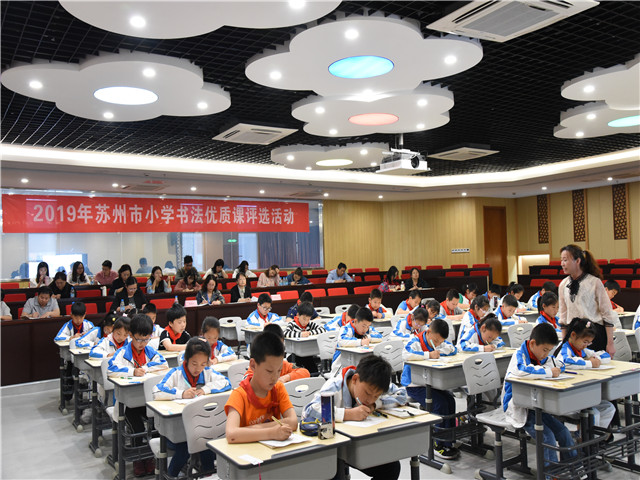 5月14日,苏州市小学书法优质课评选活动如期在苏州工业园区车坊实验小学举行。比赛共分软笔、硬笔两个组别,23位选手登台竞技。比赛吸引了来自苏州大市范围内一百多名老师前来观摩学习。