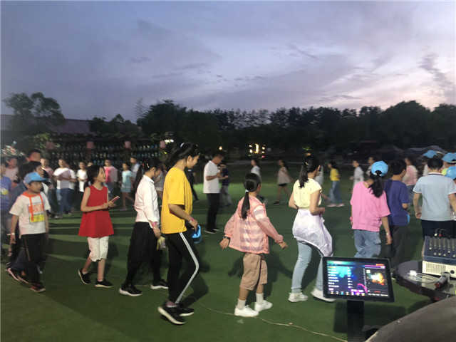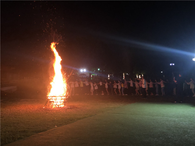 团团的篝火映照着孩子们欢乐的脸庞,微微的晚风掺和着孩子们的歌声,篝火晚会深受孩子们的喜爱。