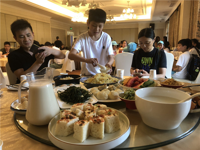 第二天一大早,孩子们起得早早的,来到餐厅体验了扬州的早茶,感受了扬州人民悠闲自在的慢生活。