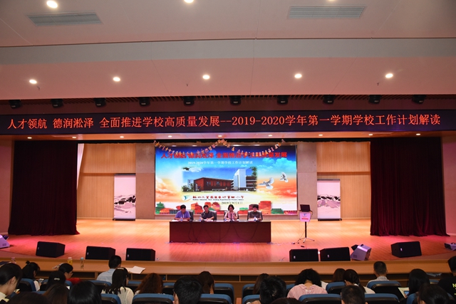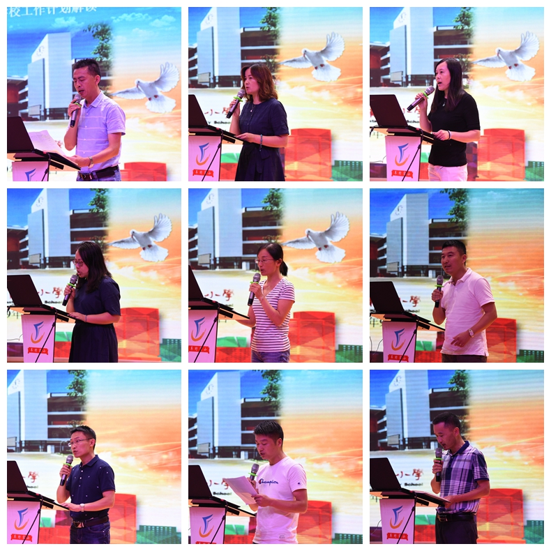 德育处、教导处、师训处、教科室、信息中心、体卫艺处、总务处、安保处、校办等九个部门主任从从各自部门的工作实际出发,总结过去的成功经验,详细解读了新学期部门工作计划,明确管理要求,部署新学期具体的工作。