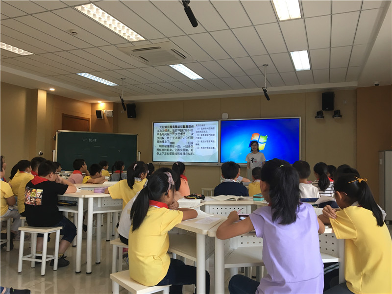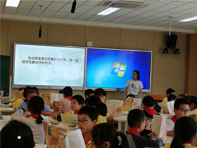本次教研活动由钱晟祺老师在未来教室执教四年级上学期的课文《陀螺》。上课伊始,钱老师直奔文章的中心段落,也是最精彩的“斗陀螺”环节,紧紧围绕本单元课文的训练重点“如何做批注”展开课文的教学,钱老师带领学生圈画出关键词,并进行规范的批注示范,引导学生总结归纳出具有实践性的4条批注小贴士。学生运用学到的方法在课文的其他段落进行训练,其间老师通过及时反馈学生的学习效果,起到了巩固提升的作用,最终让学生语文能力得到提升。